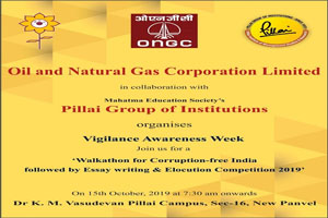 Oil and Natural Gas Corporation Limited in collaboration with Mahatma Education Society’s Pillai Group of Institutions organises Vigilance Awareness Week. Join us for a ‘Walkathon for Corruption-free India followed by […]