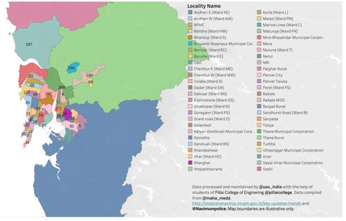 Check out this new dashboard prepared by the Urban Expansion Observatory, Pillai College of Engineering and Pillai Institute of Management Studies Faculty and students tracking the spread of #Covid19 in 56 different sub localities in the Mumbai Metropolitan Region.