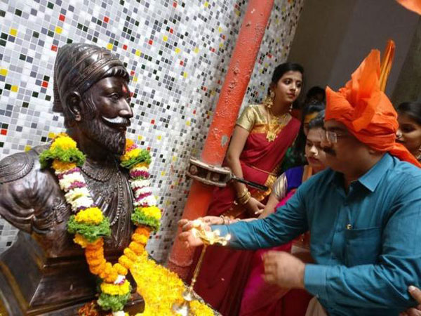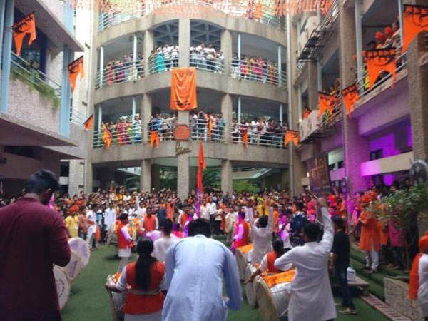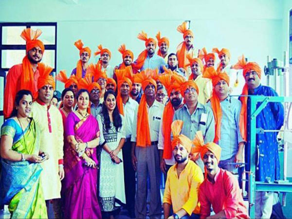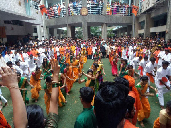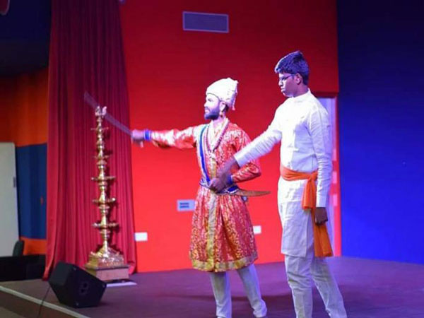 On this day students play cymbals and drums during a procession on the occasion. Faculties and students raise flags and dress up in costume of Chhatrapati Shivaji as a tribute to Shivaji Maharaj.