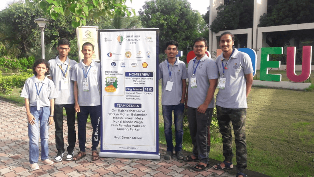 Team Homebrew provided a solution for the problem statement “Extraction of Data including voice and images from various social Media platforms from Disaster struck areas”, which was floated by NDRF. Nodal center for the team was Pandit Deendayal Energy University (PDEU). Team was headed by Om Surve and team members were Shreya Mohan Belanekar, Hitesh Lukesh Meta,Kunal Kishor Wagh, Yash Ramdas Wakekar and Tanishq Parkar. Prof. Jinesh Melvin was mentor of the Team.