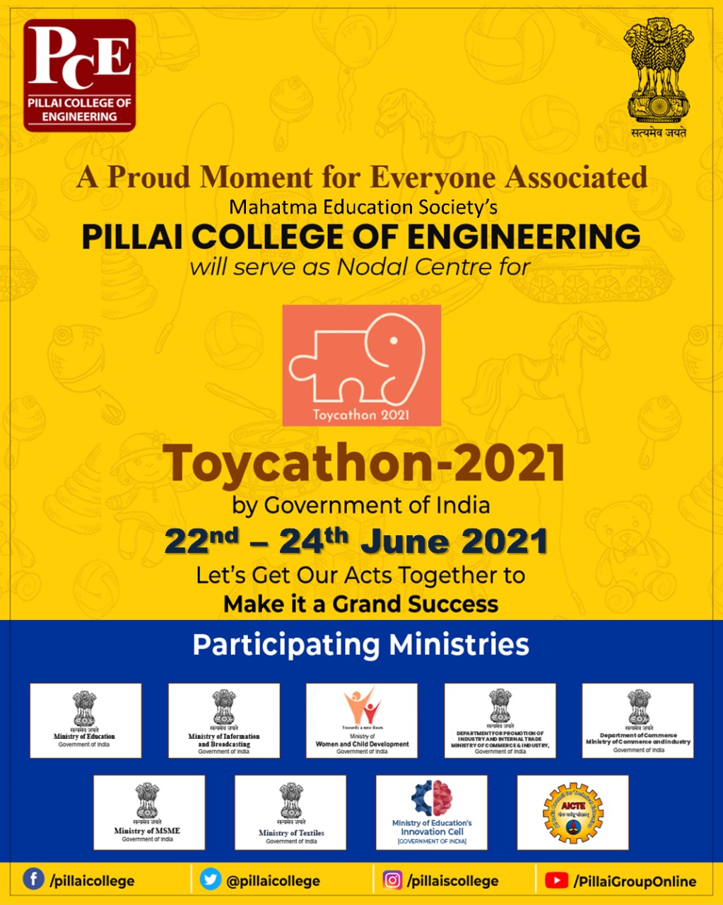 PCE is one of the very few TOYCATHON Nodal Centers in Maharashtra. The GRAND FINALE is going to be conducted in online mode on 22nd – 24th June, 2021. The participating teams will design various toys for different age groups.